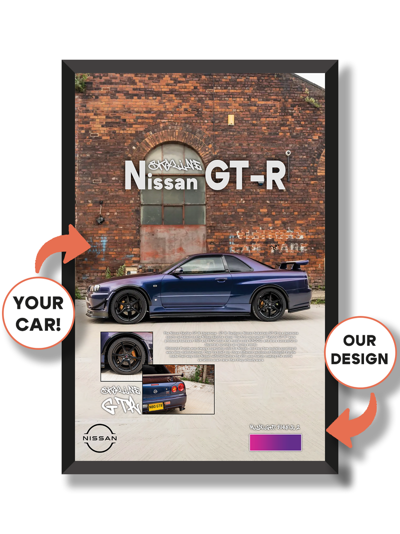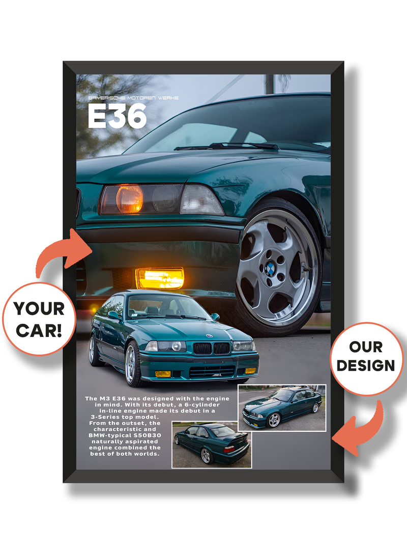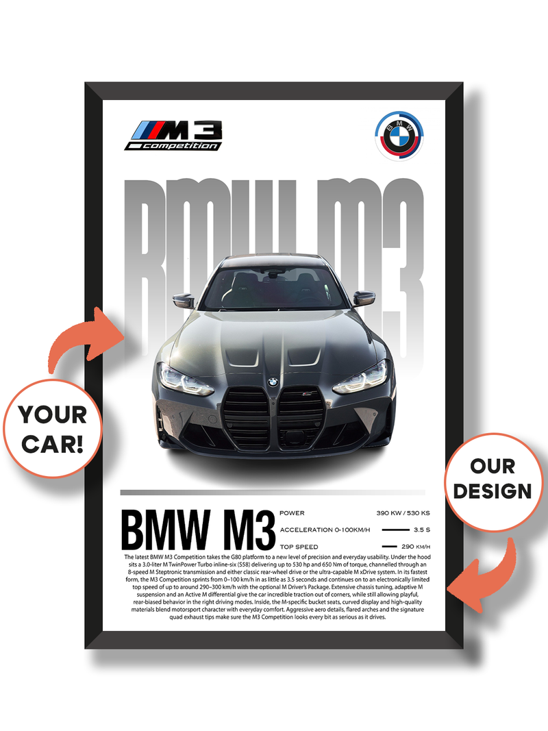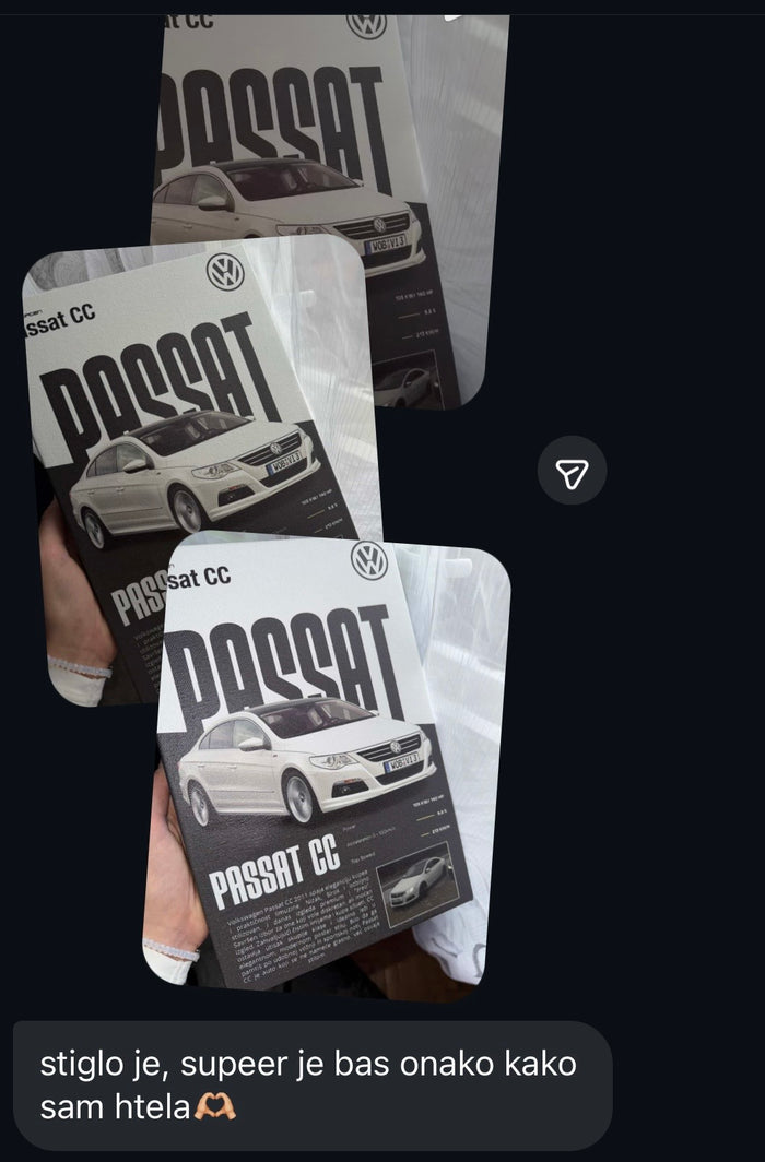 Izaberi format i stil postera, a zatim pošalji fotografiju automobila i dodatne informacije.