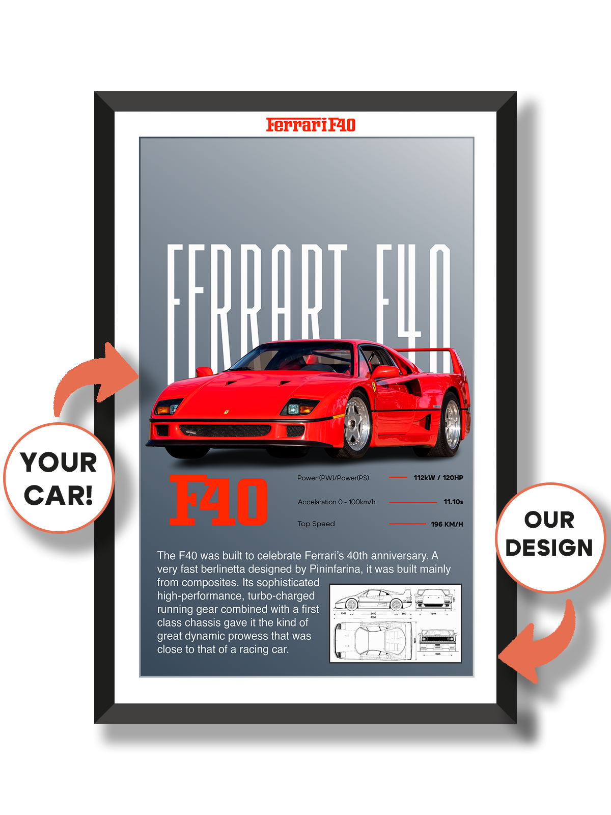 Our designers will recreate your car exactly as shown in the photo you upload.