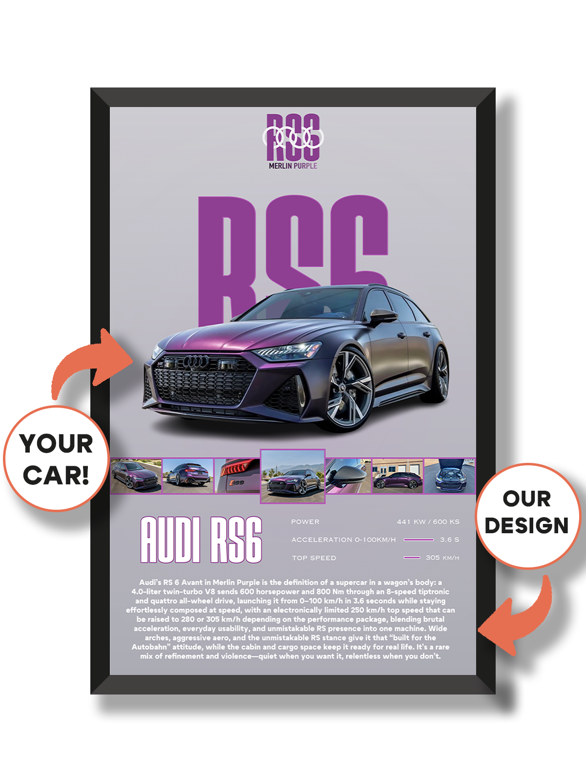 Our designers will recreate your car exactly as shown in the photo you upload.