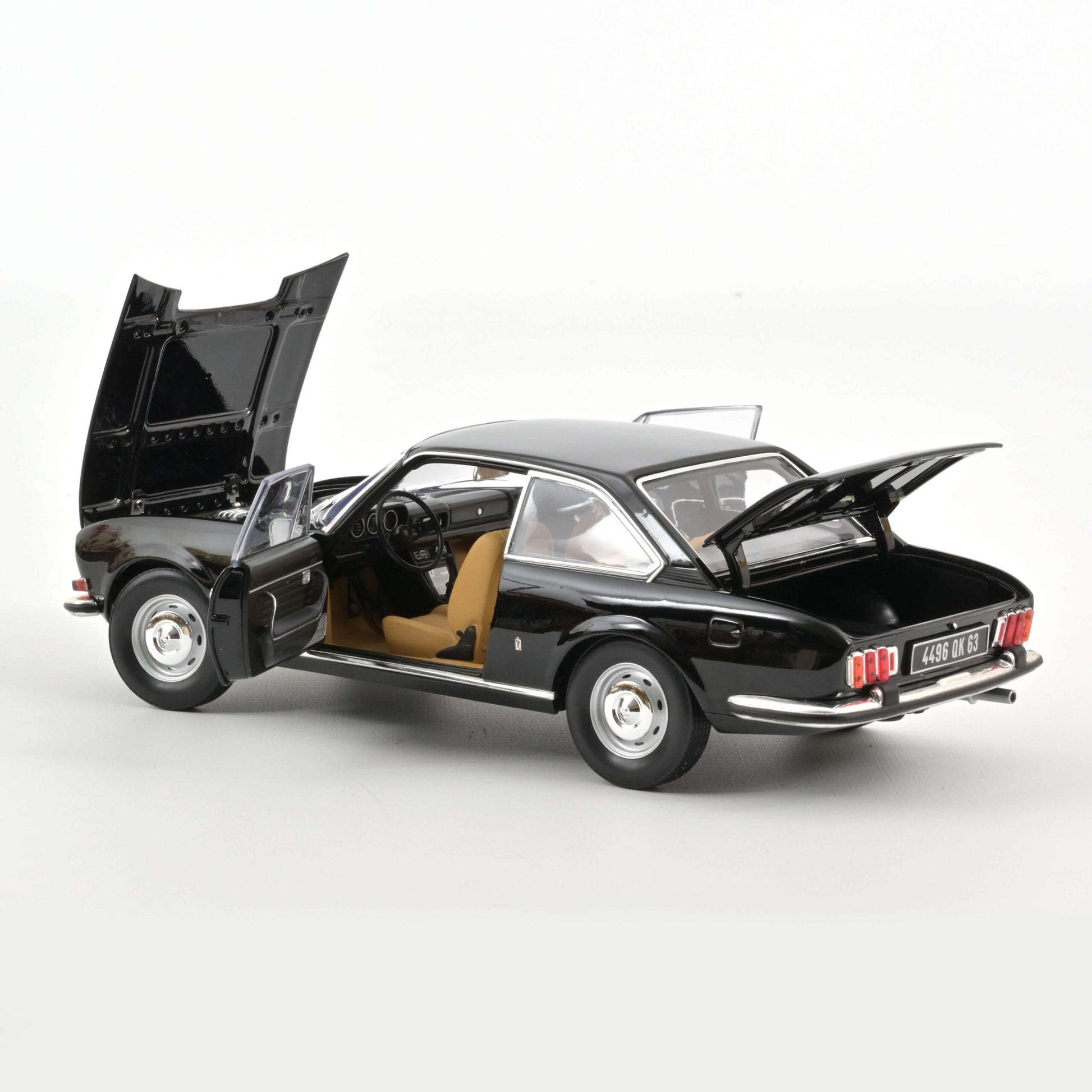 Peugeot 504 Coupé iz 1972. godine, elegantno izveden u crnoj boji sa bež enterijerom, sada dostupan kao detaljna 1:18 die‑cast minijatura renomiranog proizvođača Norev. Model je izrađen od metalne legure, sa realističnim gumama, hromiranim detaljima i otvarajućim vratima, haubom i prtljažnikom, što dodatno doprinosi autentičnosti i interakciji s modelom.